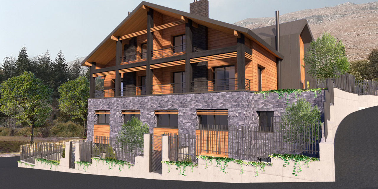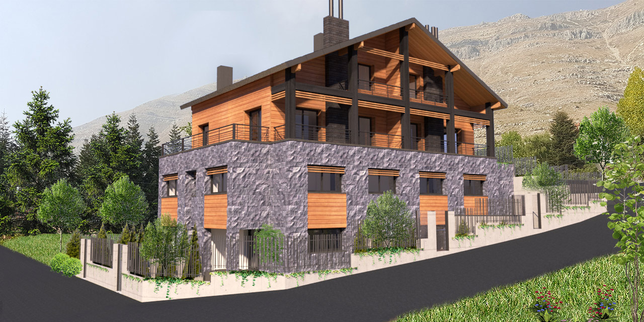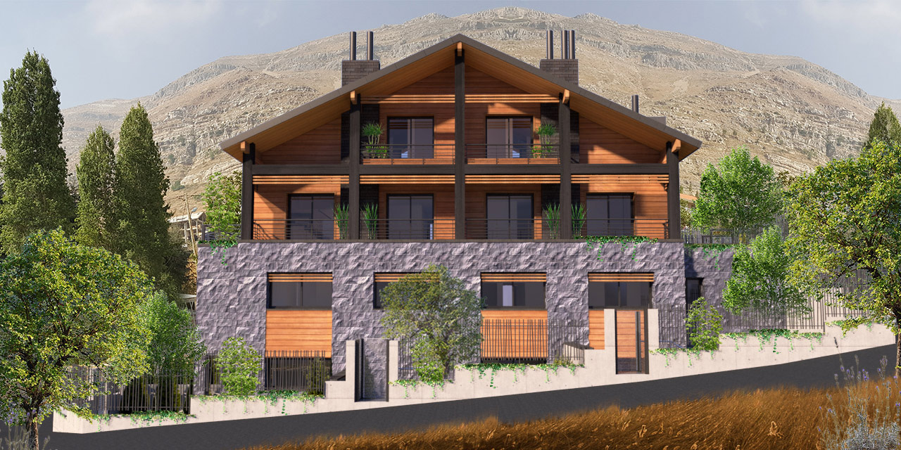 The project is located in the mountains of Val de Neige, near the ski slopes, and consists of six duplex chalets with private gardens overlooking at the mountains of Faraya. The project’s design target was to offer an outstanding high-end exterior look as well as comforting and luxurious interiors.